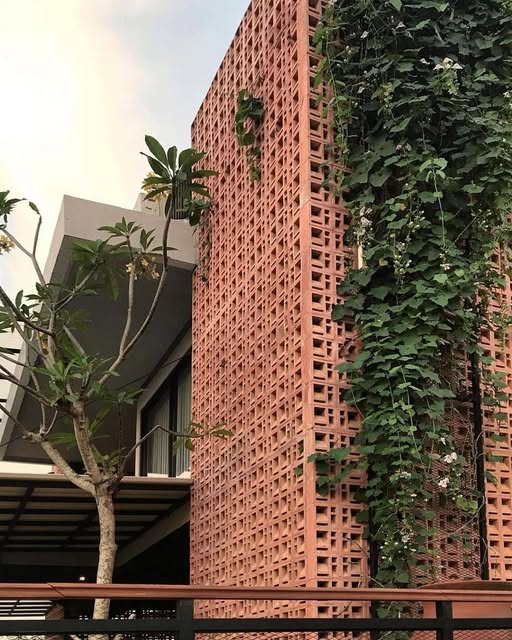 The geometric play of light and shadow from concrete ventilation blocks builds depth, texture, and personality something flat walls can’t replace. Functional airflow, striking visual impact.